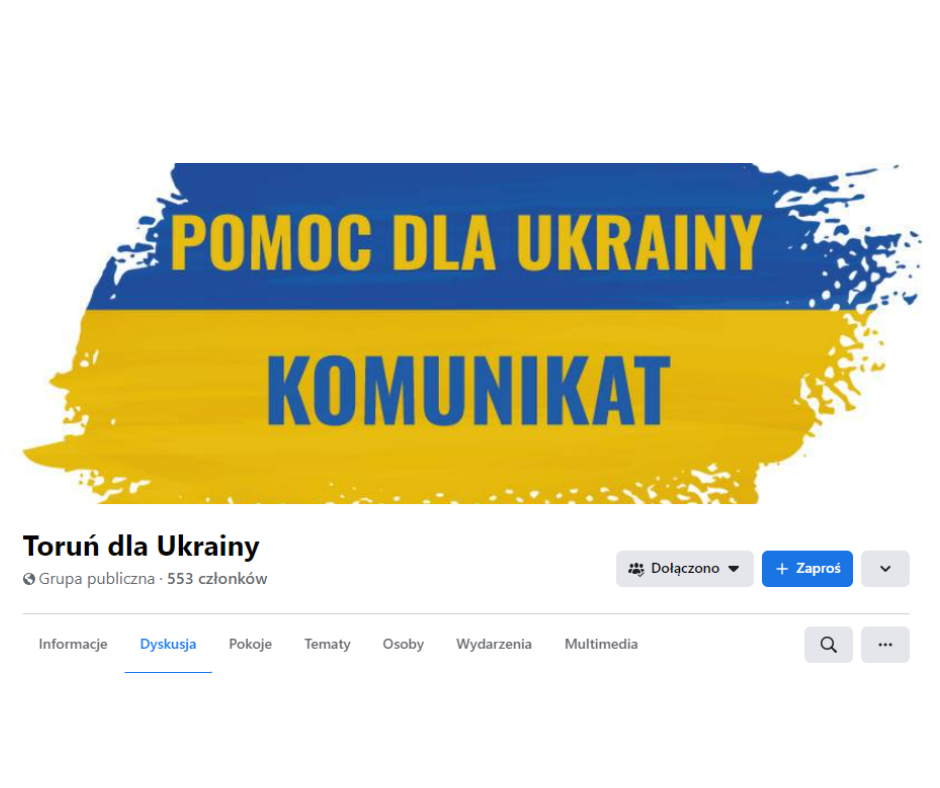 Na Facebooku zawiązana została grupa wsparcia mieszkańców naszego miasta dla Ukrainy. Gorąco zachęcamy do zapisów. Im nas więcej, tym lepiej możemy pomóc.